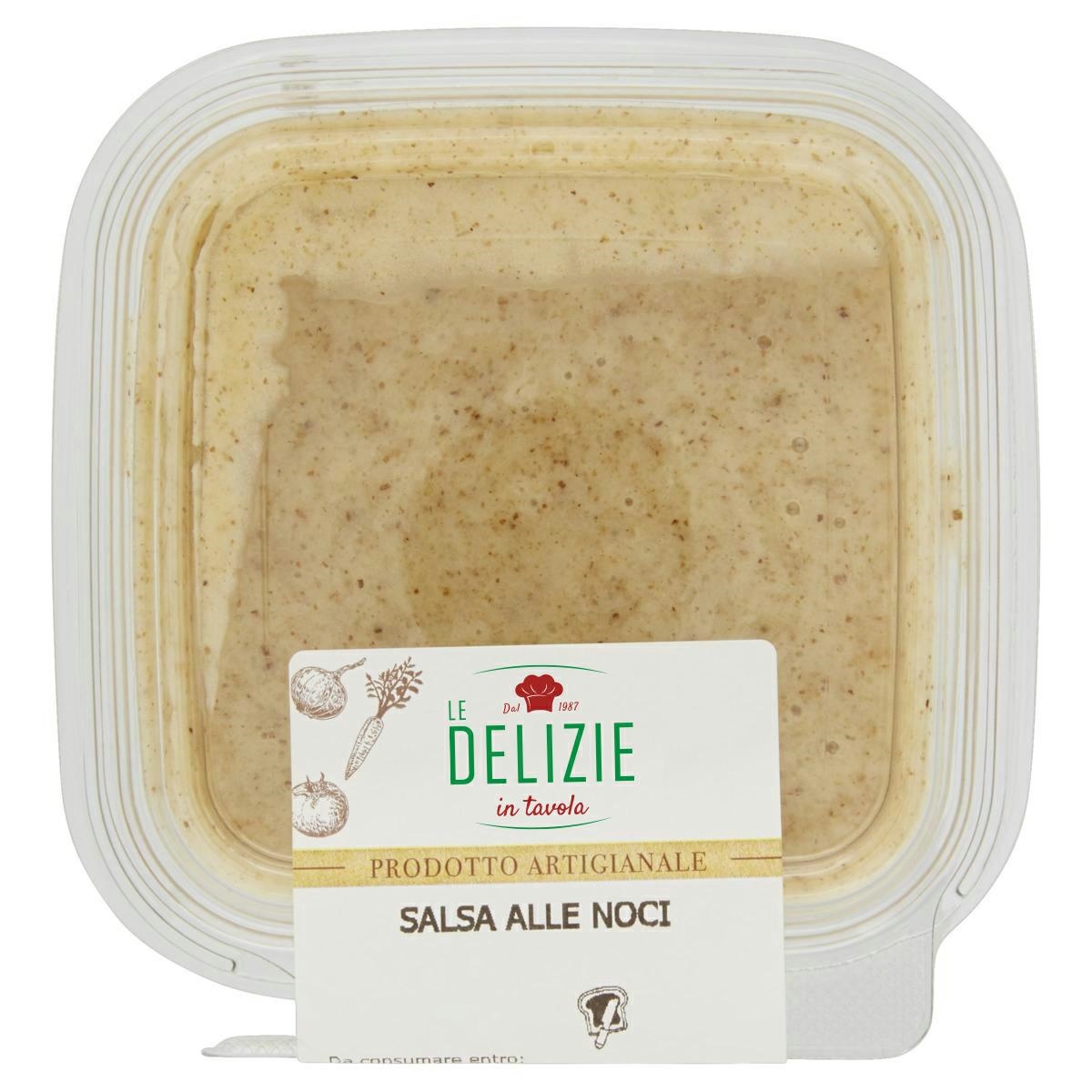 | INGREDIENTI | NOCI 34.0%, OLIO DI SEMI DI GIRASOLE, BURRO , PECORINO ( LATTE DI PECORA, SALE, CAGLIO), PARMIGIANO REGGIANO D.O.P. ( LATTE VACCINO, SALE, CAGLIO), SALE IODATO, ANTIOSSIDANTE: E300, AGLIO. |